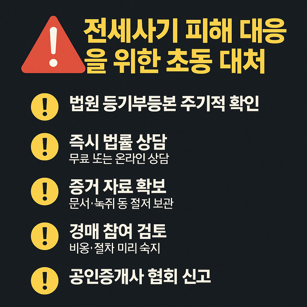 - 증거 자료 확보: 문자·통화 녹음·계약서 사본·등기부 사본 등 철저 보관