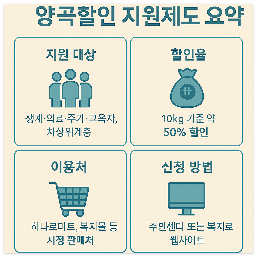 참고 키워드: 2025 양곡 할인 제도, 저소득층 쌀값 지원, 기초생활수급자 복지 혜택